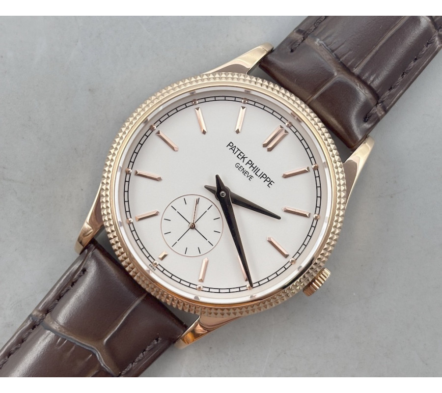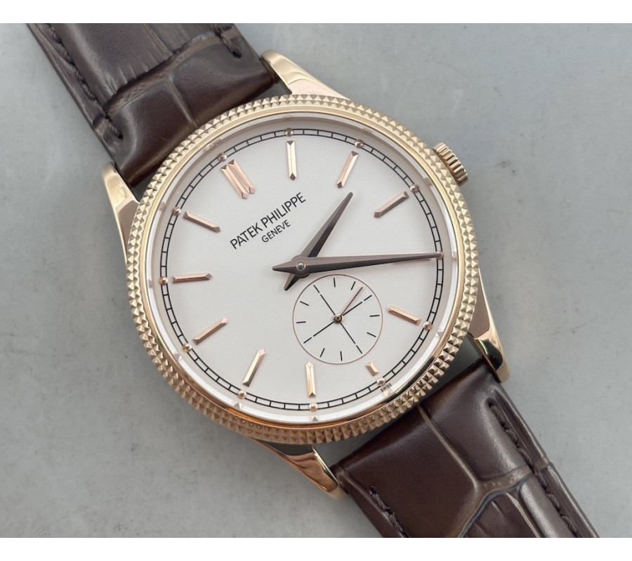 Calatrava 6119R RG 1:1 Best Edition White Dial on Brown Leather Strap A324CS